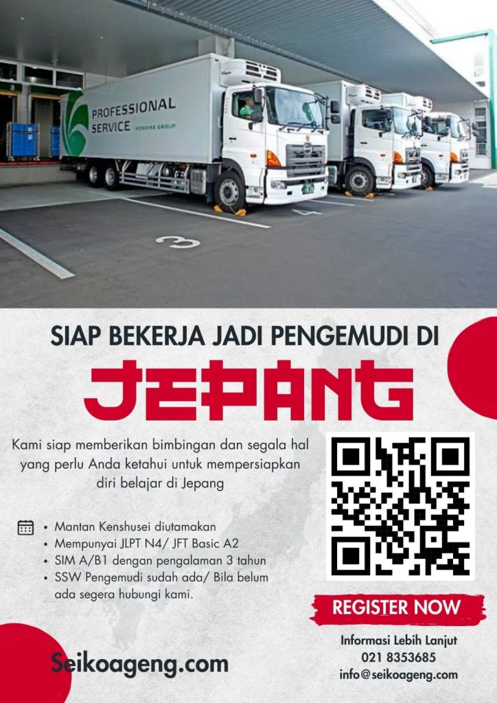 Menjadi pengemudi di Jepang adalah peluang kerja yang menjanjikan bagi tenaga profesional Indonesia, karena Jepang membutuhkan pengemudi yang berkompeten, disiplin, dan memahami standar keselamatan berkendara yang tinggi.